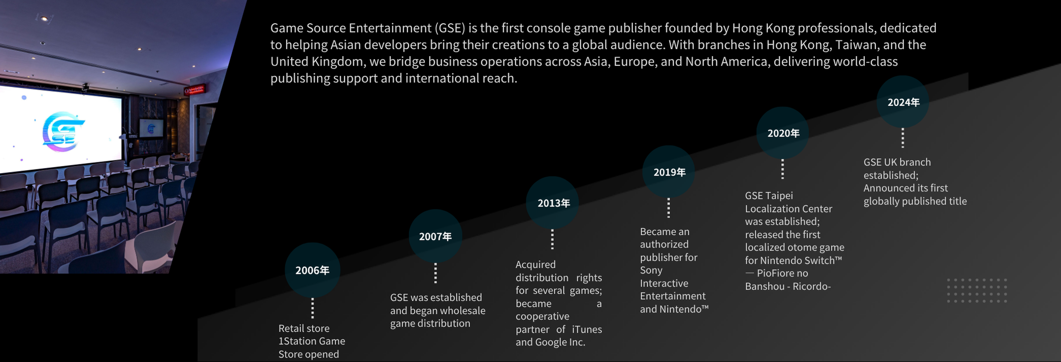 We are a leading video game distributor and publisher based in Hong Kong, with a special expertise in the Greater China area. Our mission is to bring the best gaming experiences to players around the world. Leveraging our deep knowledge of the local market and our extensive distribution network, we excel in delivering top-quality games to a global audience. Our published titles have successfully entered over 20,000 retail locations worldwide.
