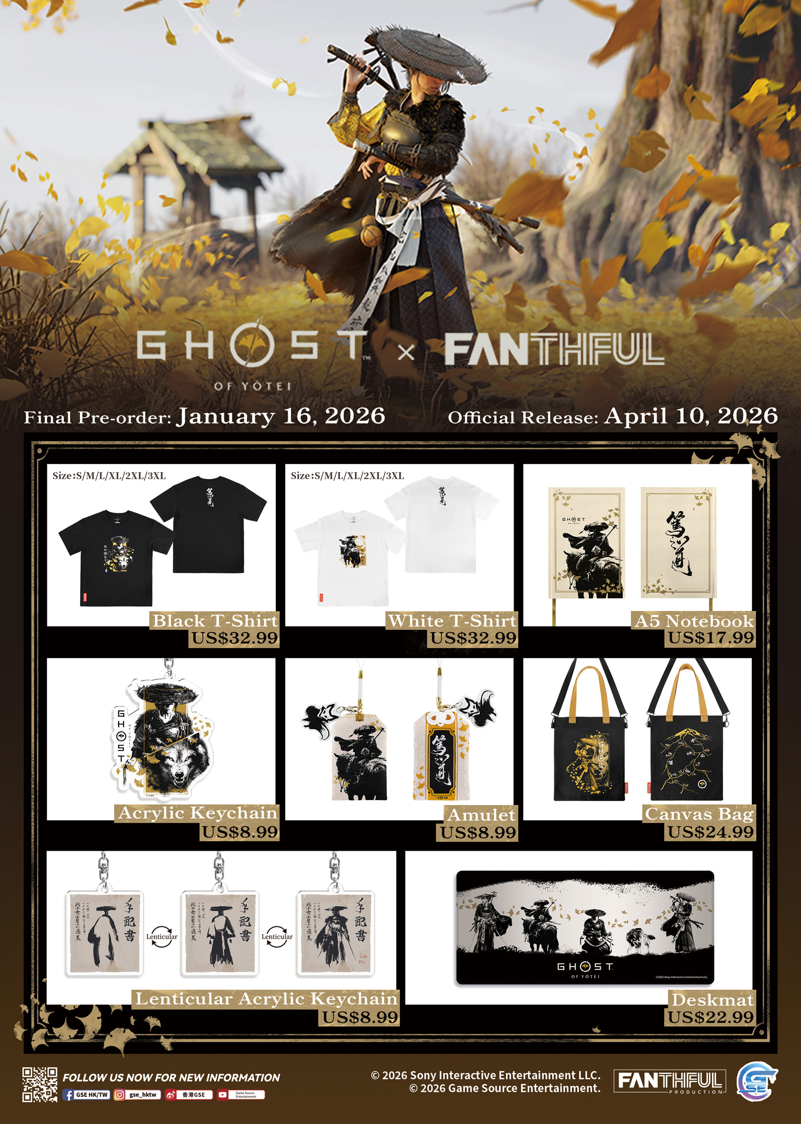 FANTHFUL is immensely honored to once again collaborate with Sony Interactive Entertainment to bring you the officially licensed 【Ghost of Yōtei x FANTHFUL】 themed merchandise series, designed and produced by FANTHFUL. Pre-sales officially open today, and the collection is now available across all FANTHFUL platforms!