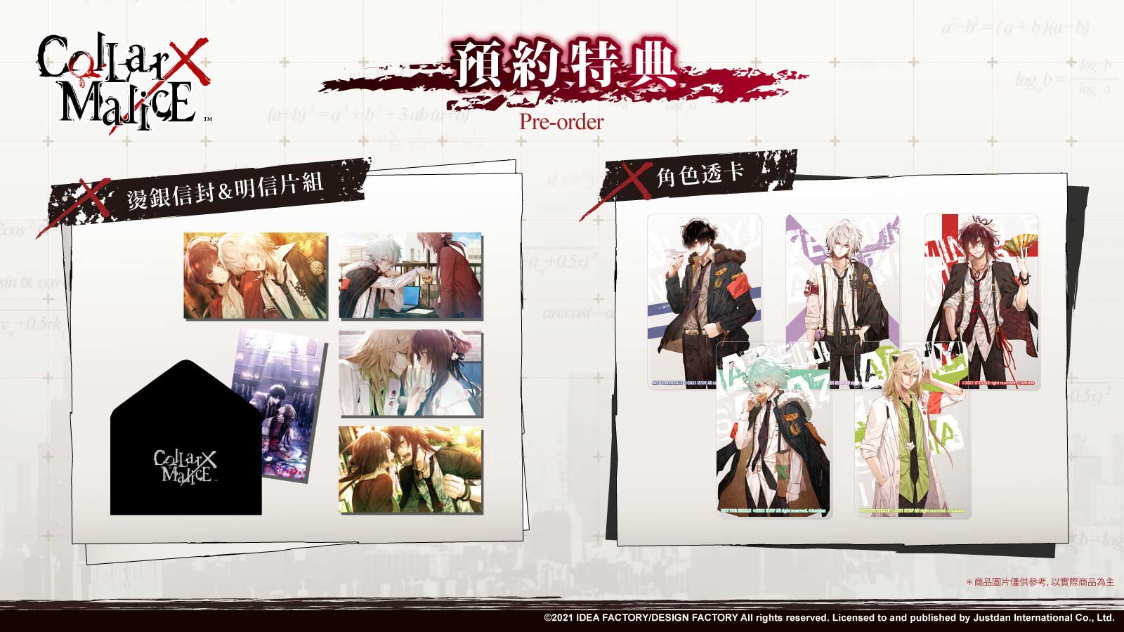 • 首批初回雙特典: - 「燙銀信封&明信片組(五入一組)」 - 「角色透卡(五入一組)」