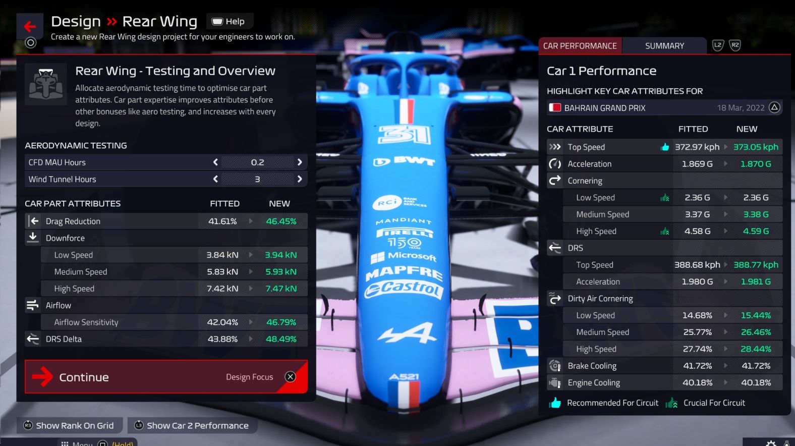 玩家親手掌握 2022 年引人注目的全新賽車設計,以前所未有的速度拉近與對手的距離。為賽車加上全新組件以迎接不同的比賽。玩家可選擇自己欲採取的工程方法,以在未來的賽道上取得優勢:玩家會選擇開發各方面都達至平衡的系統、專注於需要改進的部分,還是將特定的性能表現做到最好呢?