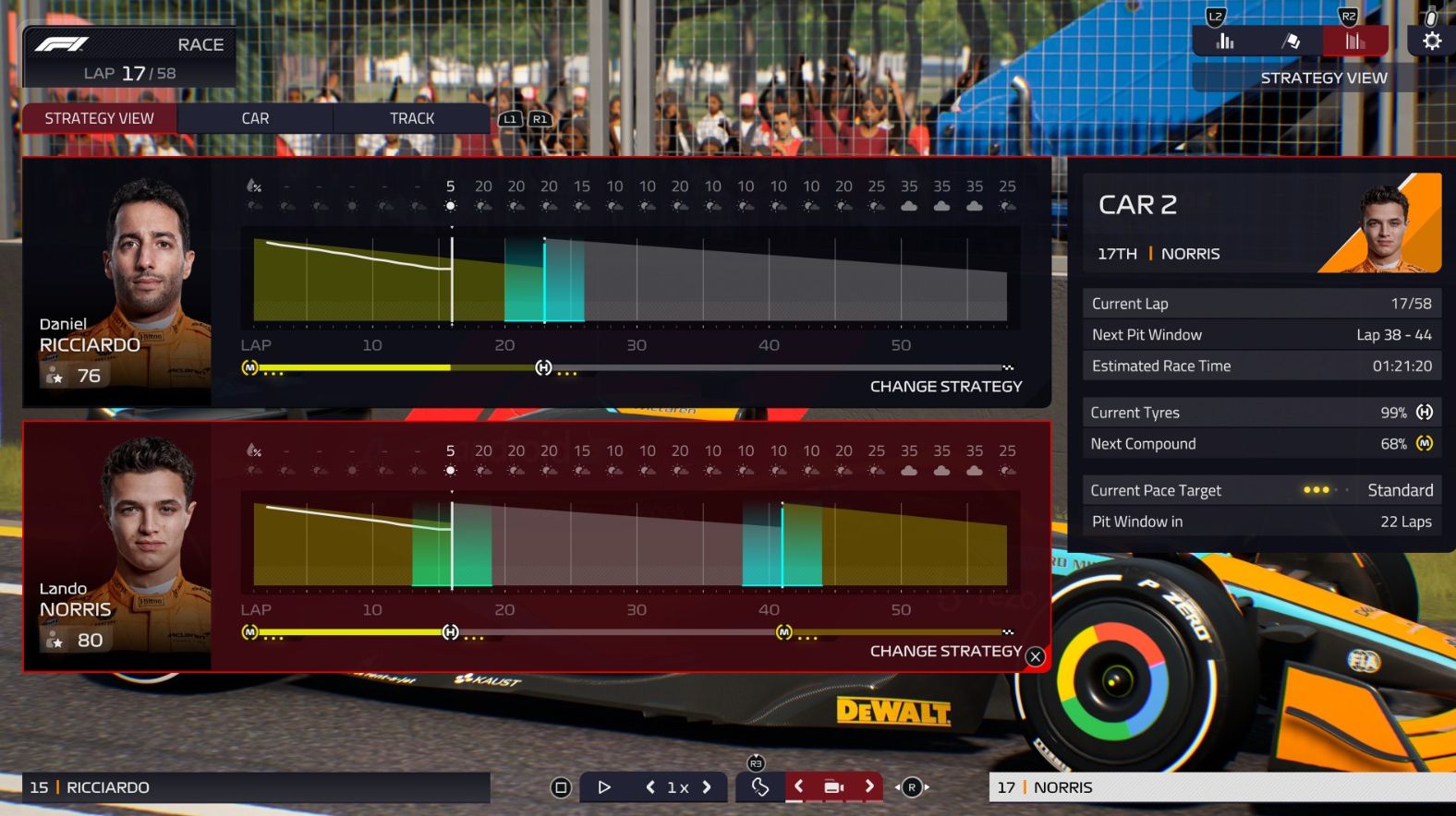 從燈號熄滅起跑到看到最後的方格旗,一切都在您的掌握之中。無論是維修站策略、輪胎選擇,還是對車手下達指令,都操之在手。制訂適合的戰略,但也要準備好應對瞬息萬變的賽場動態,例如天氣或隨時可能變化的賽道狀況。沉浸於高度擬真的官方 F1® 賽車模擬遊戲中,享受逼真無比的畫面呈現。
