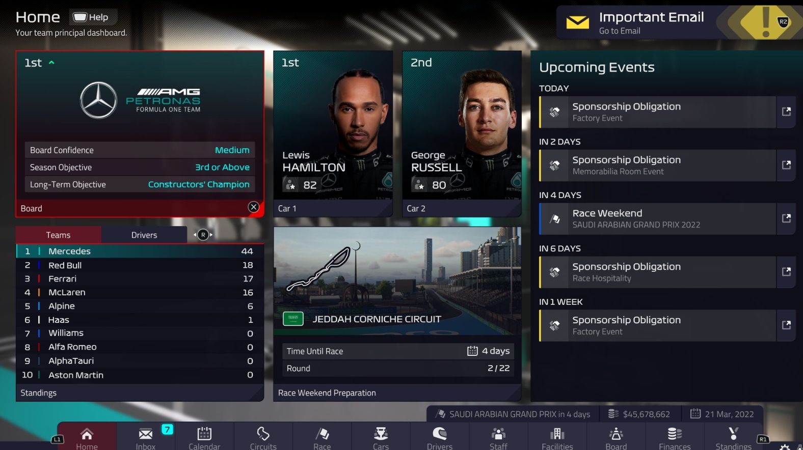 您的製造商團隊是讓比賽順利進行的核心。在各項賽事期間,於總部掌控車隊的每個環節。密切關注車隊中明星車手與工作人員的表現、確保車隊持續獲利,同時挖角對手陣營中的一流人才,確保您在往後的賽事中握有額外優勢。