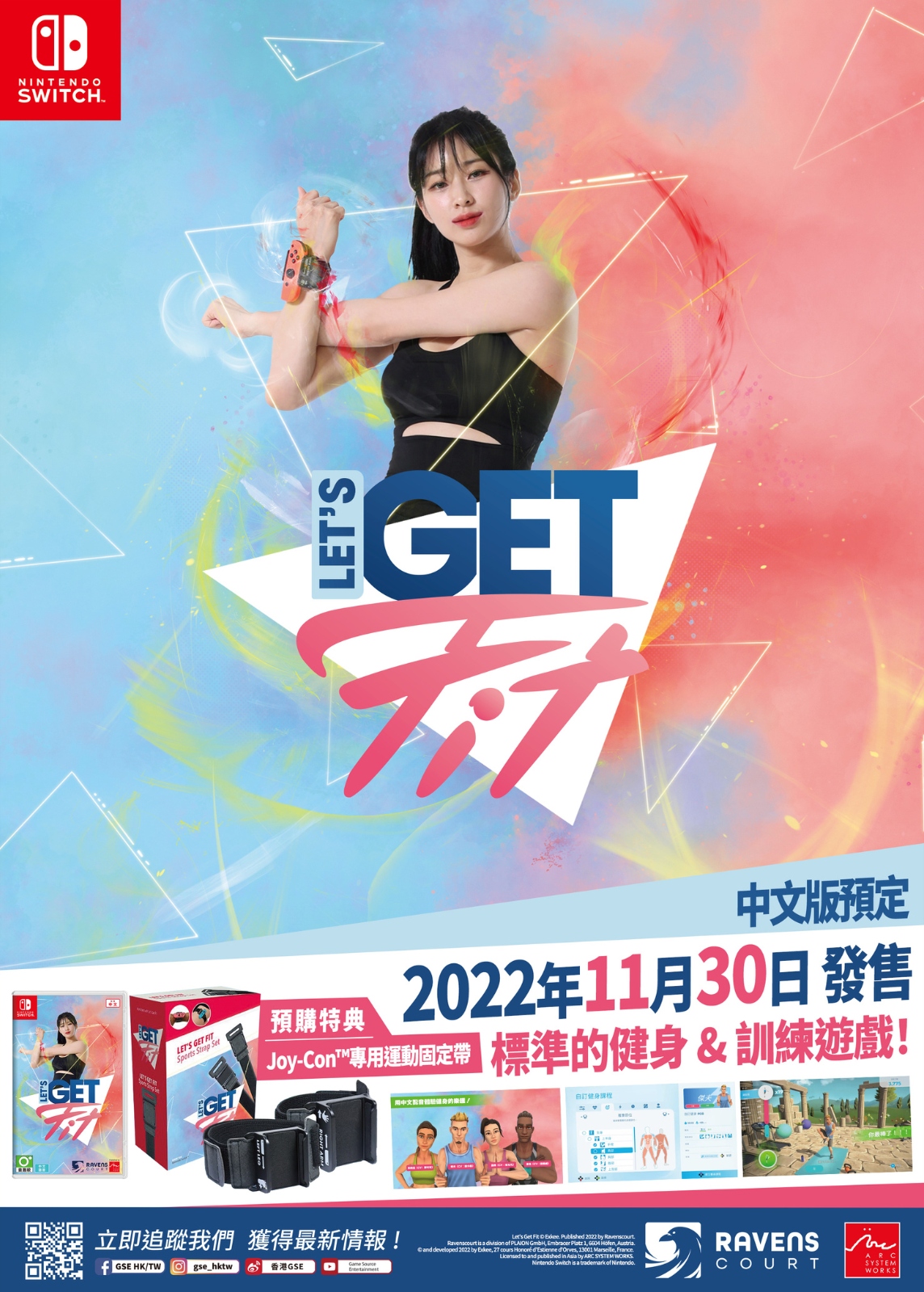 PLAION 的 Voxler 公司與 Exkee 開發的Nintendo Switch™ 遊戲軟體《Let's Get Fit》是款包含了從簡單的柔軟體操到高強度的專業健身等,100種以上不同強度的運動和多樣的運動組合,並透過各式運動來打造健康身材的標準健身/訓練遊戲。本作特點是能夠跟著遊戲,有系統地依照個人需求運動。