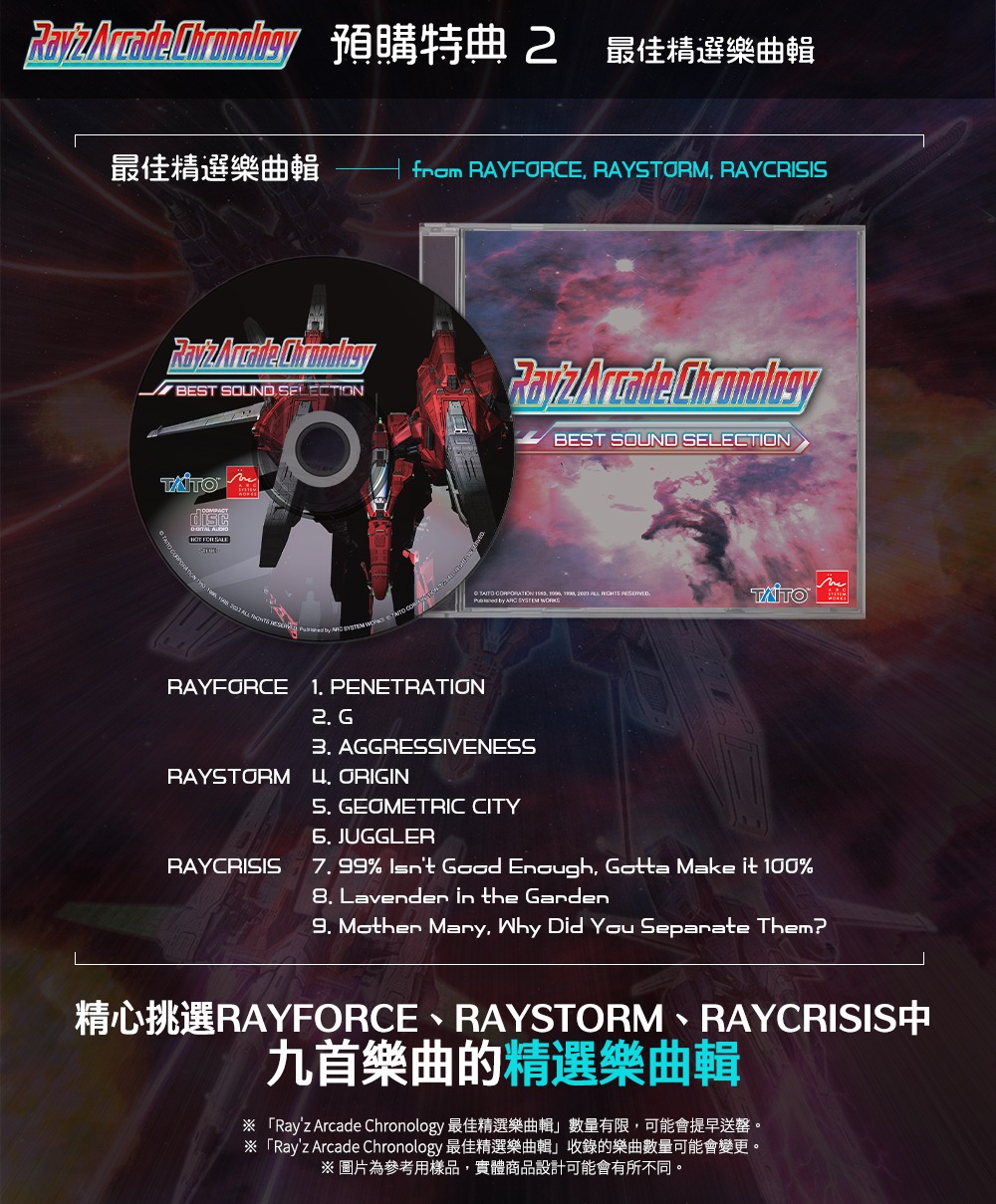 本作將會由 M2 負責移植版的重製工作,預定將會收錄 1994 年《RayForce》(レイフォース)、1996 年《RayStorm》(レイストーム)與 1998 年《RayCrisis》(レイクライシス)等三款系列作進行移植,而且其中兩個以 3D 描繪的版本將會進行 HD 高畫質化,合計將會一次收錄三款遊戲合計共五個版本的《Ray》系列作遊戲同梱,並將會收錄遊戲中的記錄存檔/記錄讀取功能,以及各種對攻略有所幫助的支援系統,讓玩家們能夠盡情回味體驗這三款經典人氣射擊遊戲的刺激戰鬥樂趣,