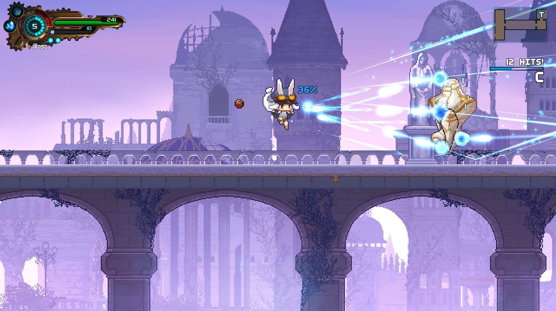 主角采維(Tevi)擁有靈活敏捷的身手,能同時使用短劍與魔力板手進行多種連擊組合;而由夥伴——希莉雅(Celia)與賽布爾(Sable)化身的兩枚浮遊炮,也能在戰鬥中提供多種火力支援,使采維得以依據情況隨時調整戰鬥風格,以華麗絢爛的連擊快速擊倒敵人!