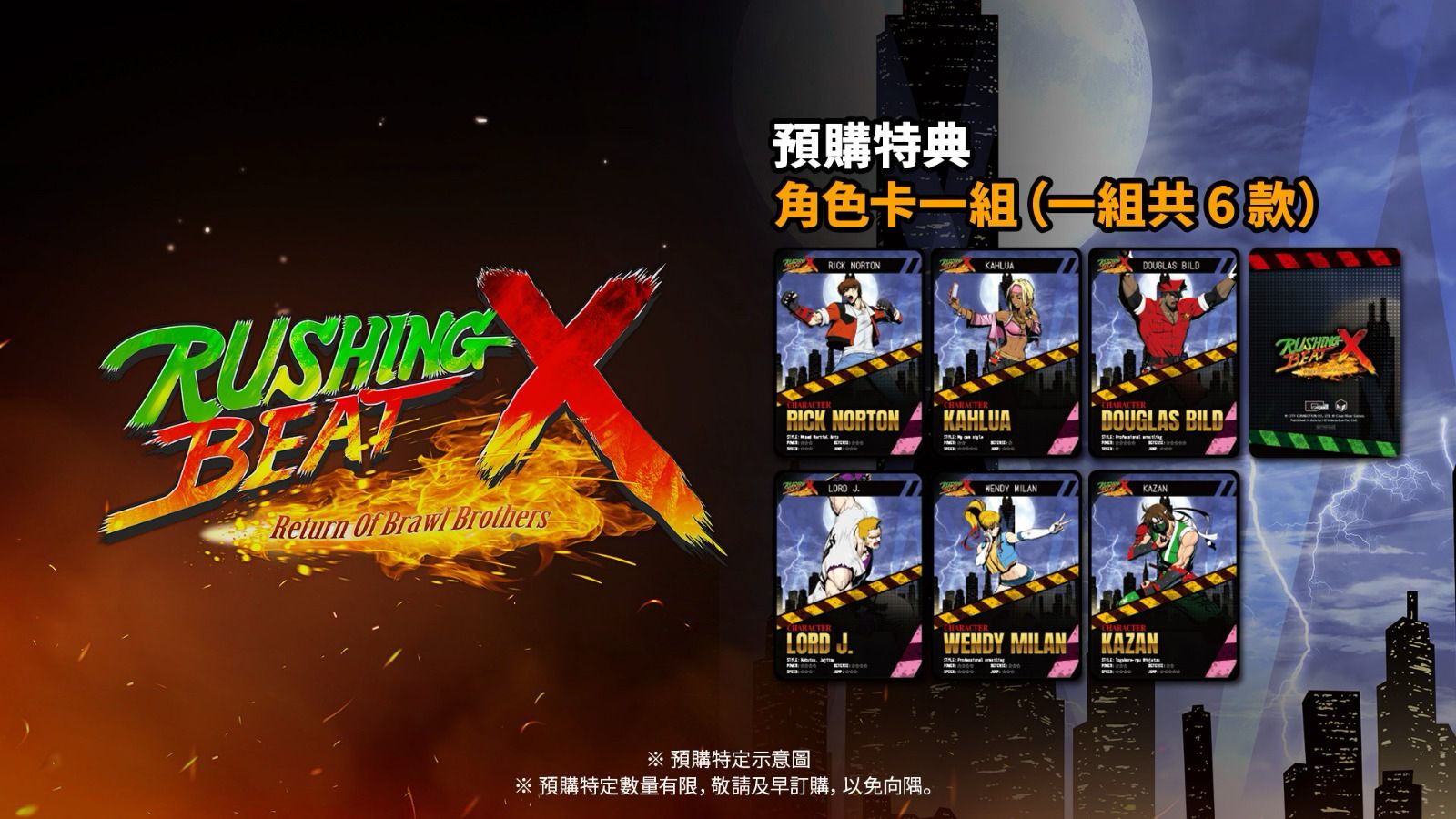 本作品是基於 JALECO(傑力可)在 90 年代於家用主機上發行的《RUSHING BEAT(ラッシング・ビート,坊間俗稱:快打刑事)》系列所製作的最新作品,描寫串聯起系列第二款作品《RUSHING BEAT 亂(ラッシング・ビート乱)》與第三款作品《RUSHING BEAT 修羅(ラッシング・ビート修羅)》的故事。遊戲的特色為玩家將能夠操作擁有各自戰鬥風格的六位角色,以簡單操縱的自動連擊為基礎,透過熟練運用技巧就能施展出多樣化的連擊,享受到充滿爽快感的動作樂趣。