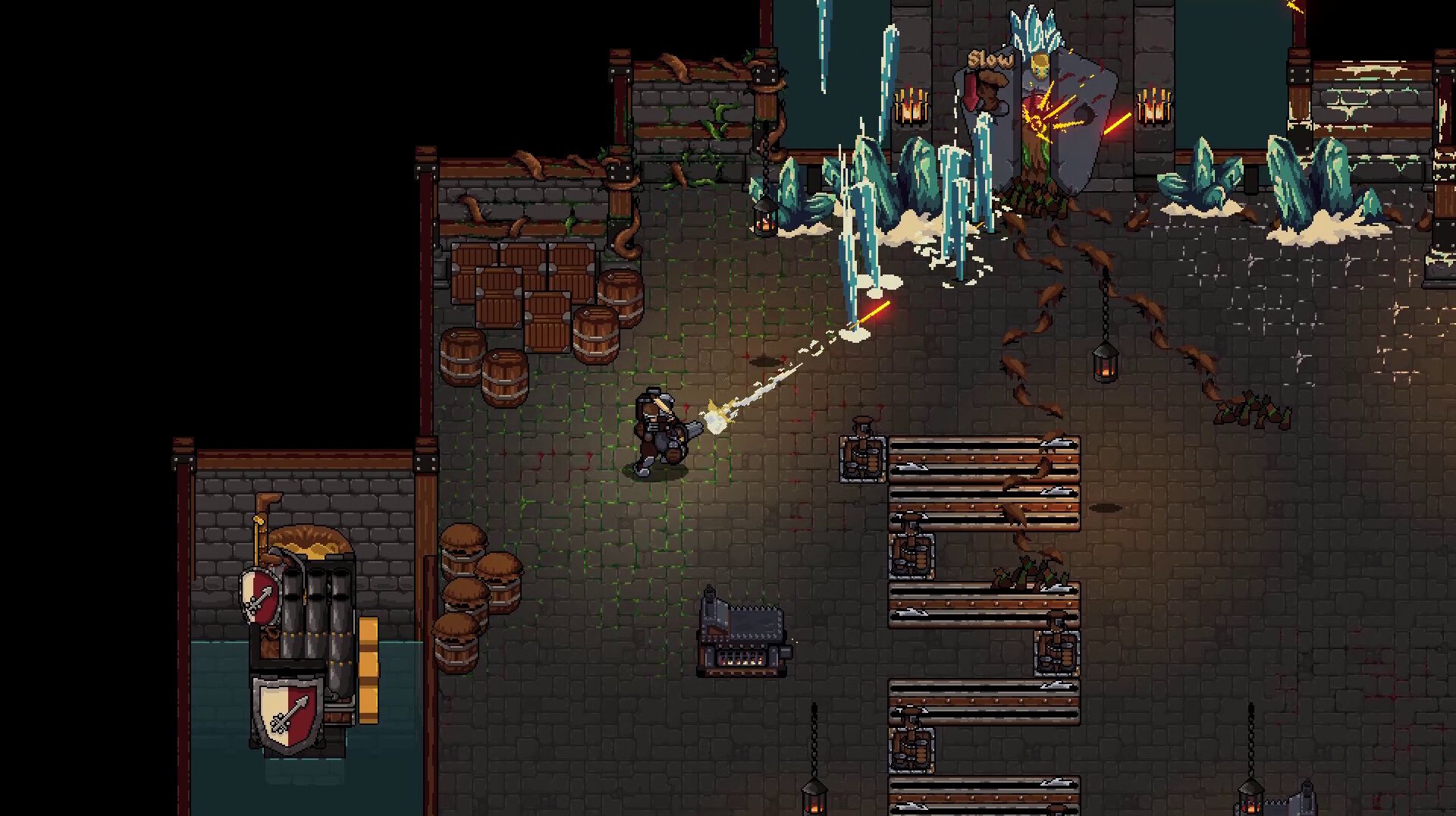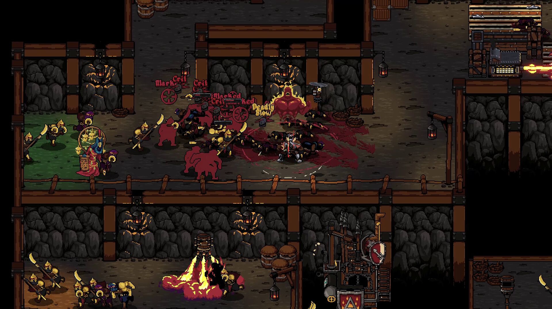 《煉金要塞》融合塔防策略與疾速戰鬥於一體,節奏凌厲,火力猛烈,風格近毀滅戰士。世界觀陰鬱殘酷,黑暗奇幻氣息濃厚,頗具戰鎚式鐵血氛圍。全作以精細 2D 像素畫面呈現。玩家既需部署防線,亦須親身作戰,守護城堡。