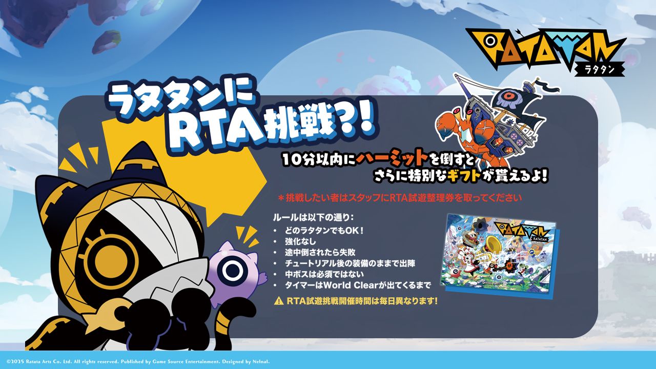 在「東京電玩展2025」上,我們將舉辦特別的RTA挑戰企劃。在沒有任何強化的情況下擊敗「寄居號」,並在指定時間內通過第一個關卡「帕樂比海盜」即可成功!成功者將獲得額外的禮物。我們期待挑戰者的參與,請確認規則後報名參加!