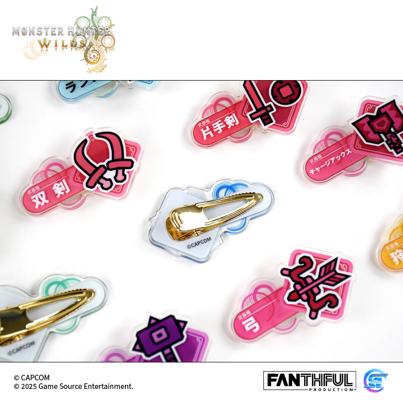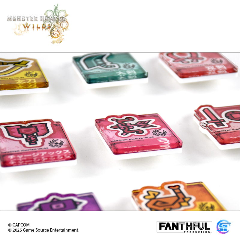 以遊戲中玩家們熟識的獵人武器圖標為主題設計的亞克力夾子。全14種風格各異的武器種類,悉數登場! 款式:大劍、太刀、單手劍、雙劍、大錘、狩獵笛、長槍、銃槍、斬擊斧、充能斧、操蟲棍、輕弩槍、重弩槍、弓,共14款盲盒包裝