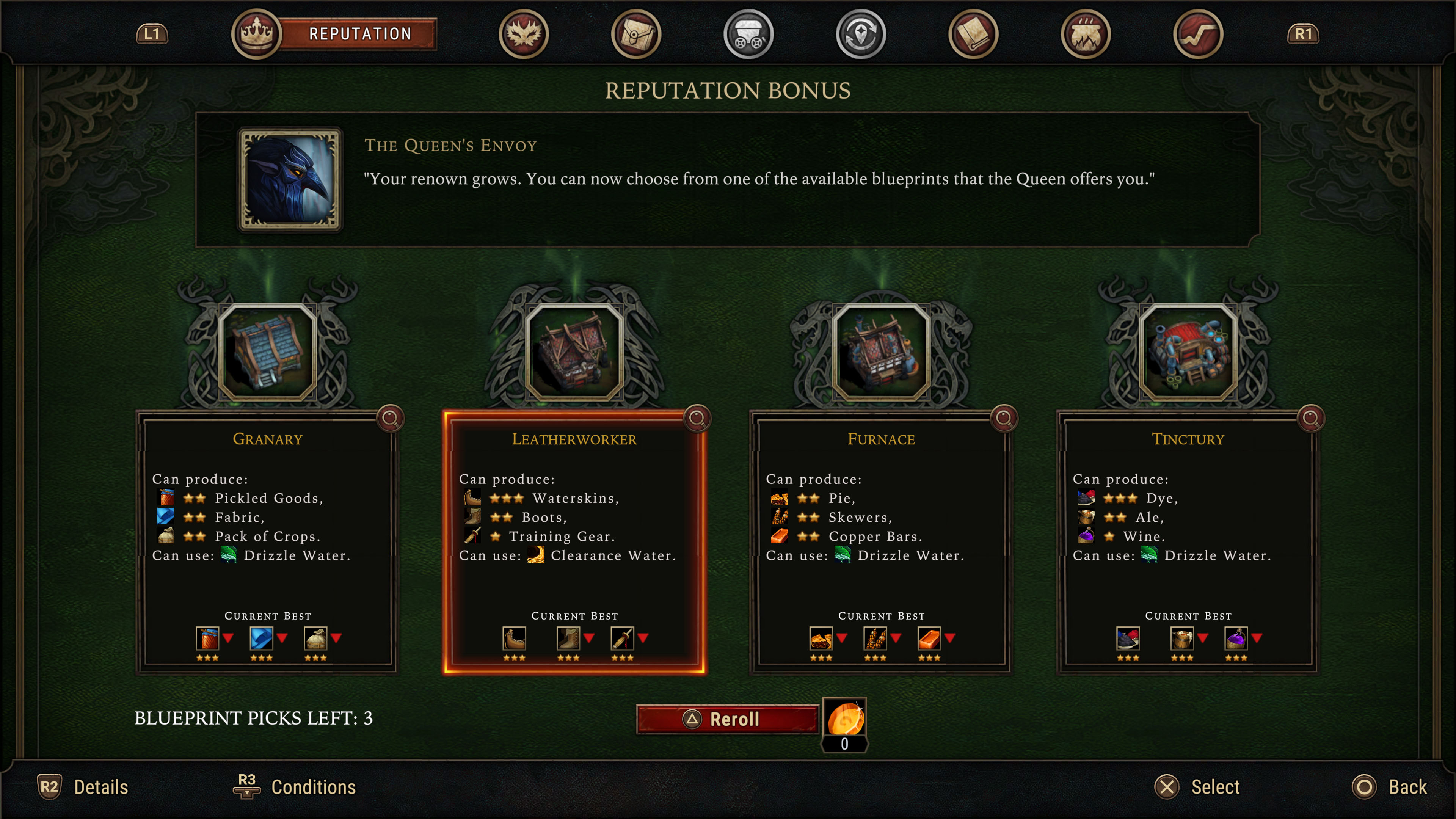 狐狸、海狸、蜥蜴、人類和鳥身女妖攜手合作,為生存而戰。上至奢侈品和娛樂品味,下至住房和烹飪偏好,利用每個群體的優勢,平衡各方需求。你會選擇製造雨衣、釀造麥芽酒、烘烤餡餅,在與森林中的敵人對峙時鼓舞士氣,還是會優先考量某個物種的需求,以便他們能迅速為女王效力?
